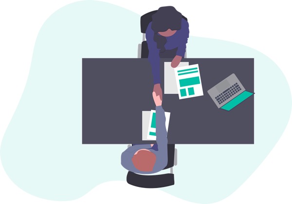 → 면접. 직장에 지원할 때 자신의 이력과 태도를 평가받는 자리.
